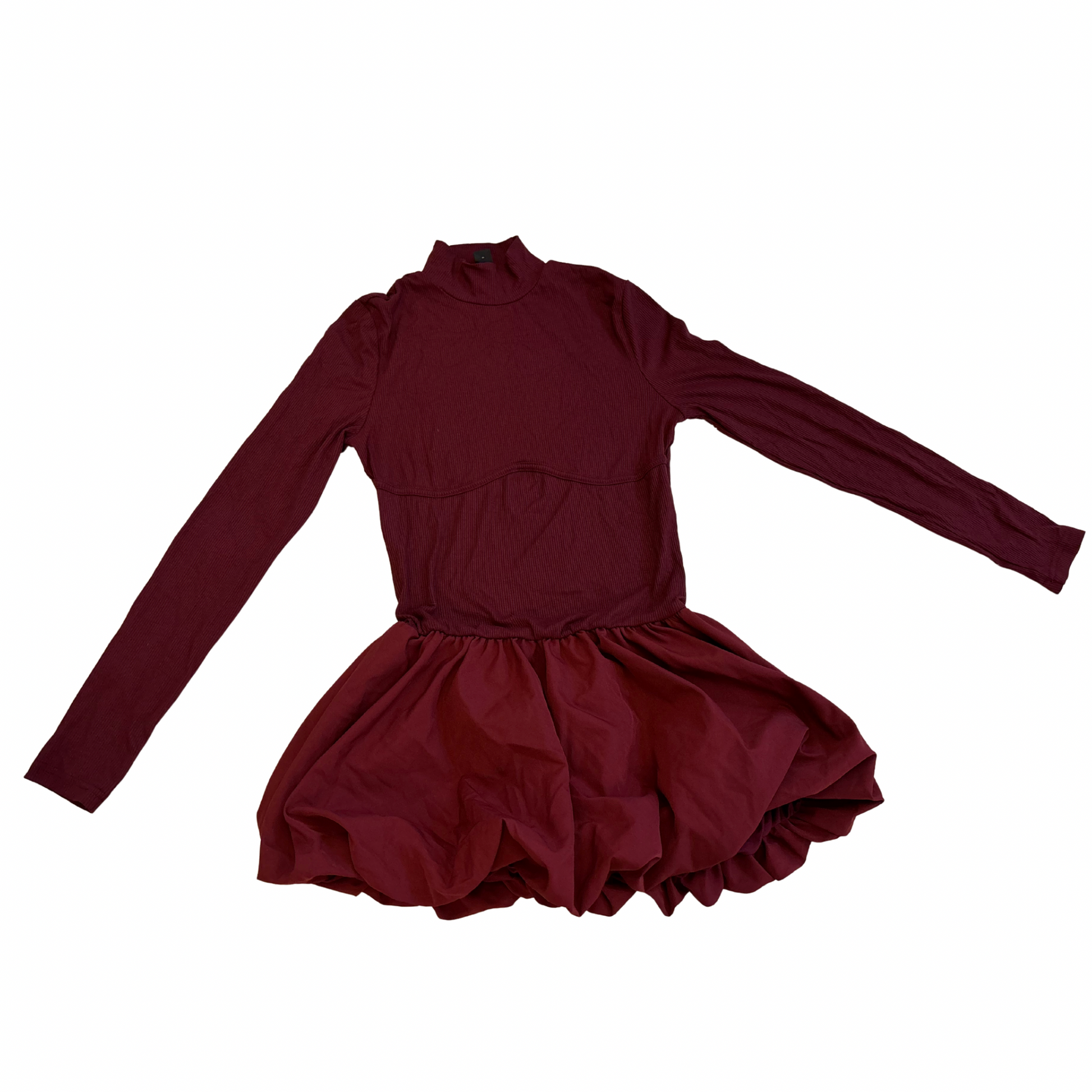 Make a statement in this burgundy long-sleeve dress featuring a playful puff-ball skirt. Elegant yet fun, it’s perfect for parties, events, or festive occasions.
