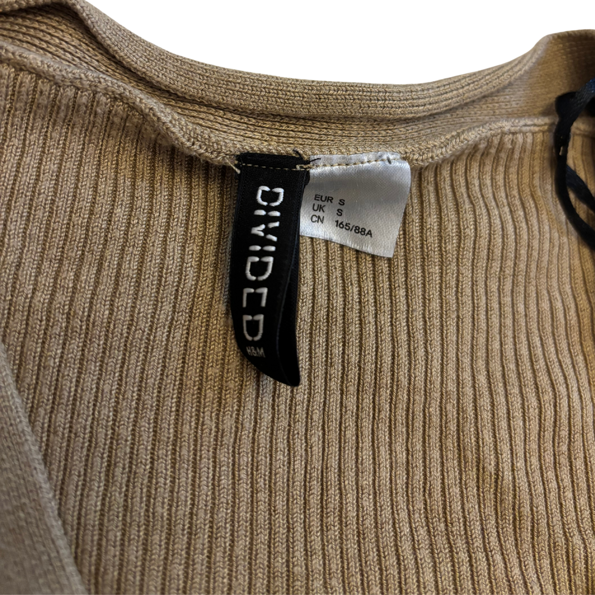 Wrap yourself in warmth and style with this H&M beige knit cardigan. The ribbed texture adds a touch of sophistication, while the button-up front and long sleeves give it that classic, cozy vibe. Perfect for layering over your favorite outfits, this cardigan is as versatile as it is comfy, whether you’re curling up with a book or adding a relaxed layer to a chic daytime look.