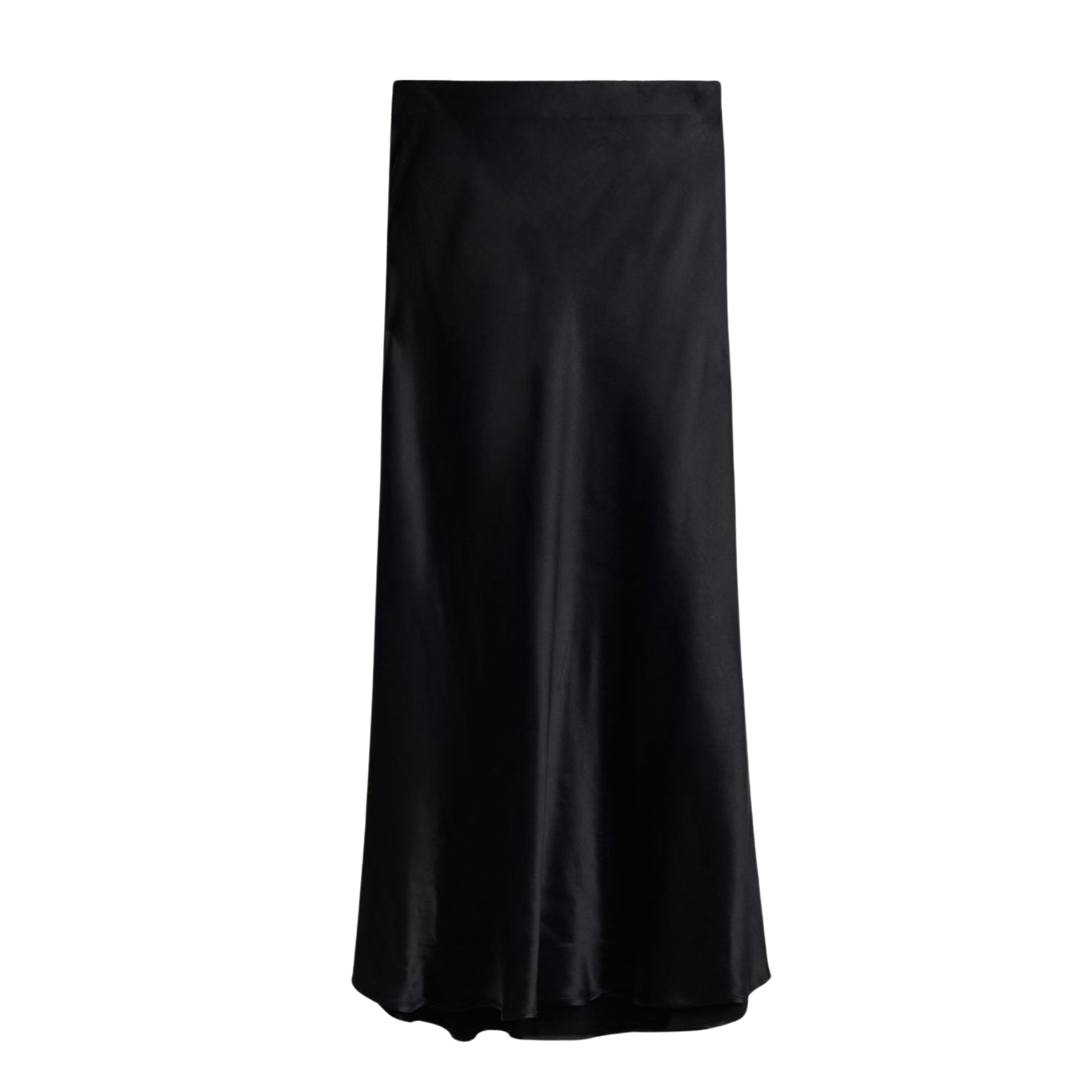 Float through your day in this effortlessly elegant black satin skirt from H&M. With a flattering midi/maxi length and a flowy, graceful silhouette, it’s the perfect mix of chic and comfort. Whether you're dressing up for a dinner date or pairing it with a cozy sweater for a laid-back look, this skirt adds a touch of luxe to any outfit. You’ll be twirling with style and confidence all day long.