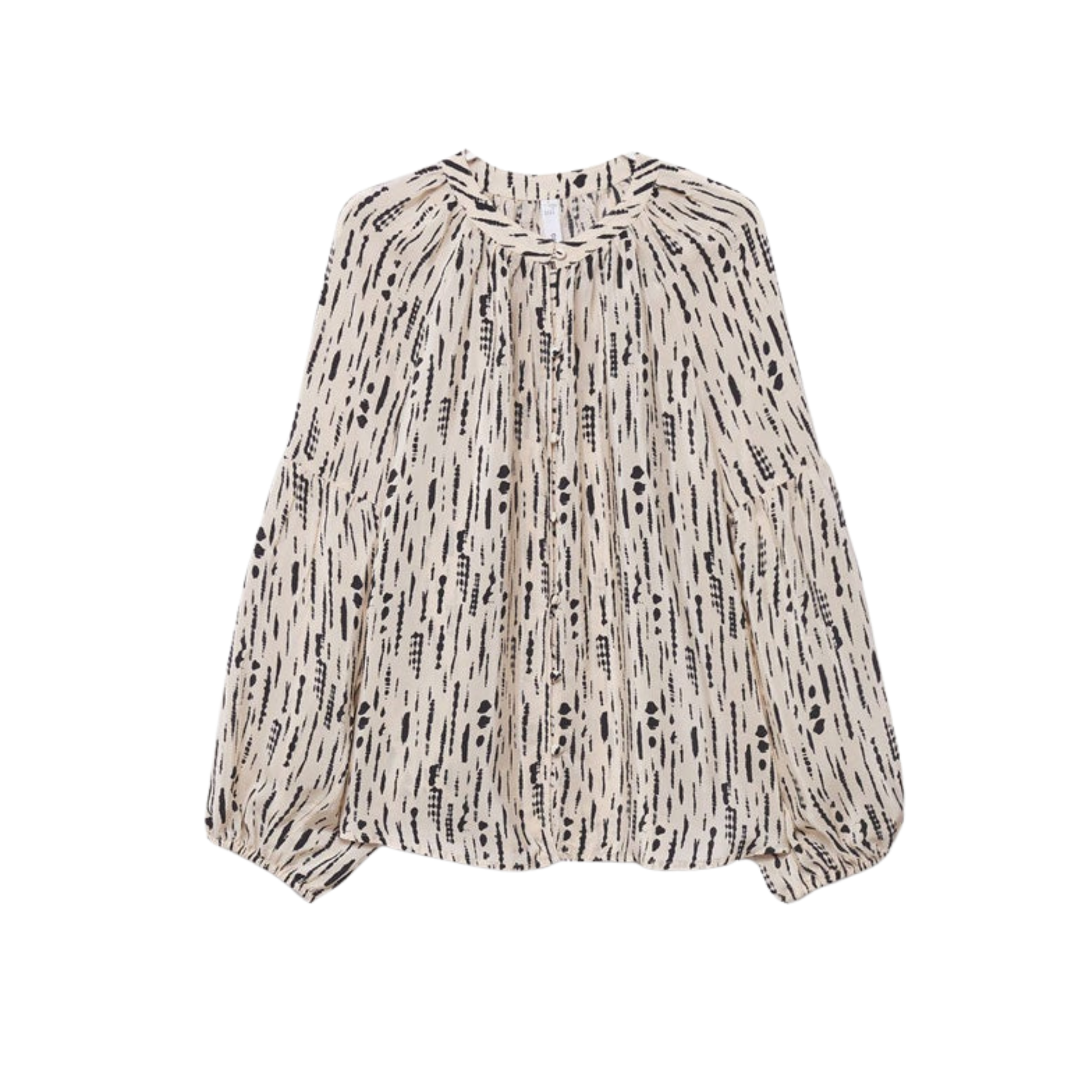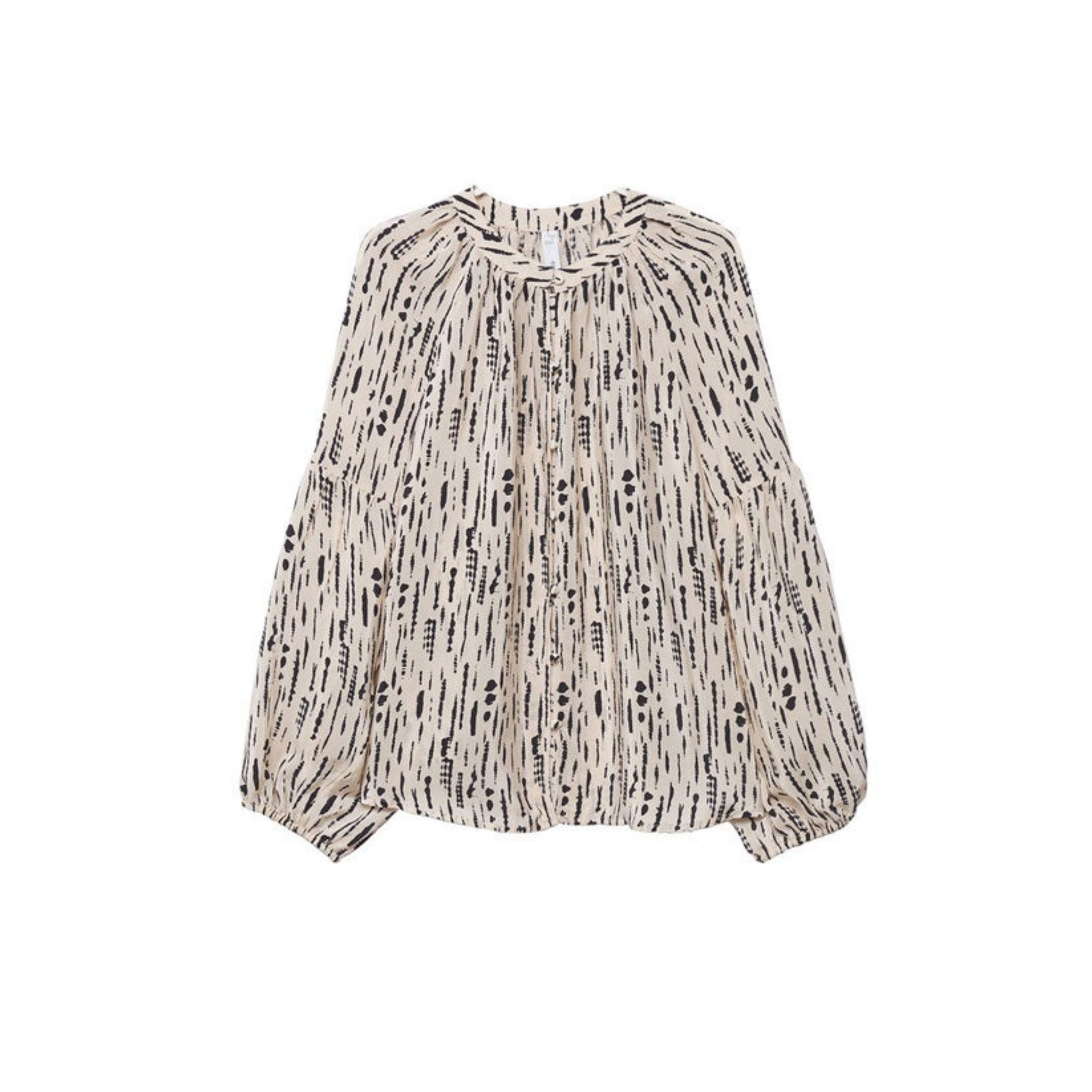 Add a touch of luxe to your wardrobe with this stunning cream satin button-up blouse from Mango. The delicate cream hue is elevated by a bold black pattern, creating the perfect mix of elegance and edge. The silky satin fabric flows effortlessly, giving you that glamorous, polished look while staying super comfy. With its classic button-up design and chic long sleeves, this shirt can easily be dressed up with a sleek skirt or dressed down with your fave jeans.