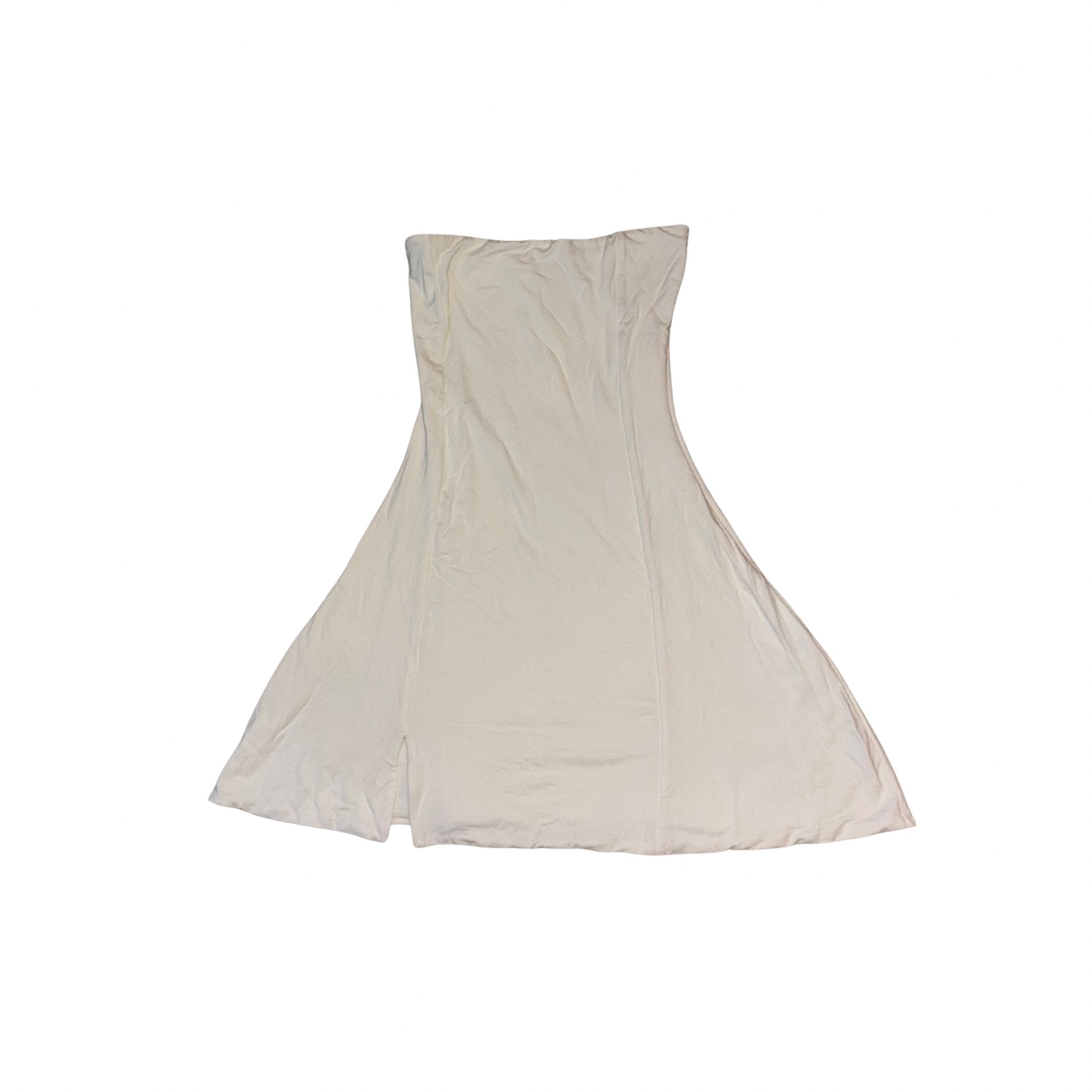Keep it chic and flirty in this white bandeau mini dress! Featuring a small leg split and double-lined material for coverage, it’s perfect for nights out, parties, or any occasion where effortless style is key.