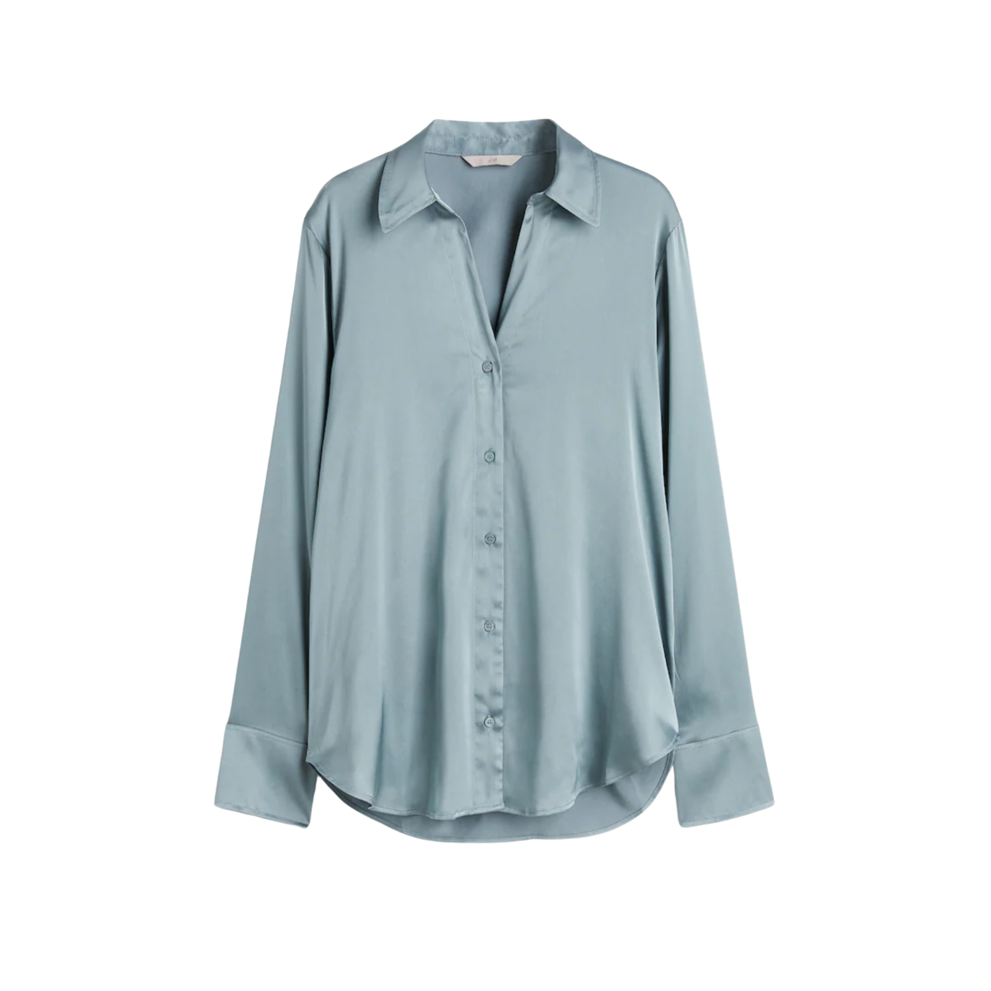 Add a touch of luxury to your everyday look with this light blue satin button-up from H&M! The silky-smooth fabric catches the light beautifully, giving you that effortlessly polished vibe. With its long sleeves and classic button-up design, it’s perfect for dressing up with tailored trousers or styling casually with your fave jeans. Soft, shiny, and totally sophisticated.