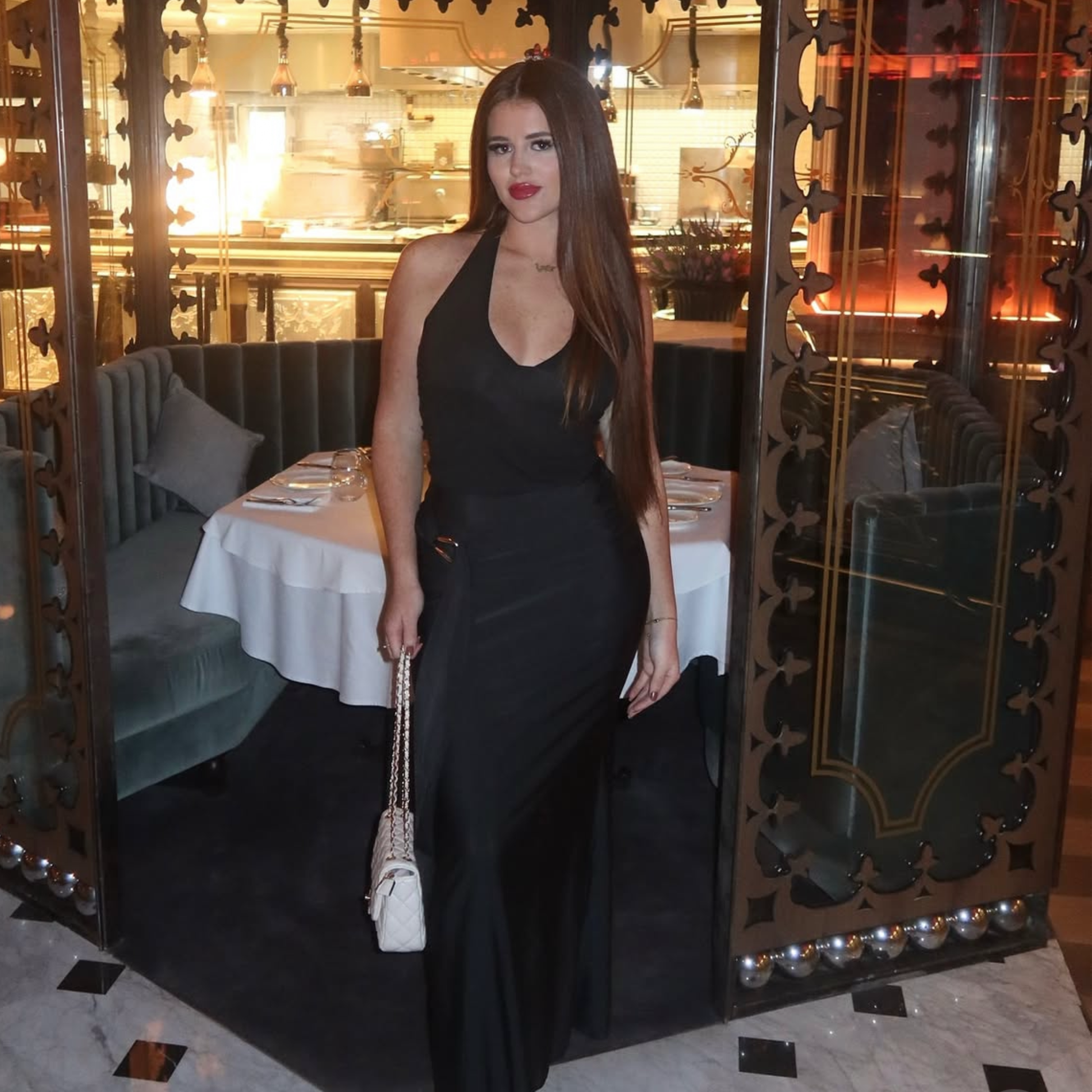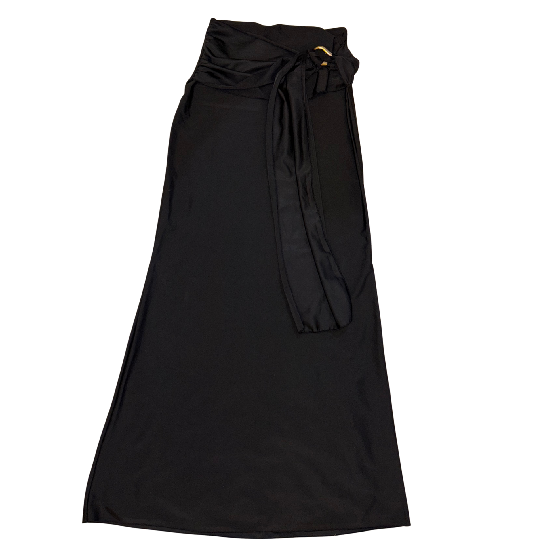 Turn heads in the Black Slinky Maxi Skirt, a perfect mix of elegance and drama. The draped fabric hugs your curves in all the right places, while the gold metal detail on the side adds a touch of luxe sparkle. Extra fabric cascades beautifully for a flowing, statement-making silhouette that’s ideal for evening events, parties, or nights when you want to feel unforgettable. Pair with heels and a sleek top for maximum glam impact.
