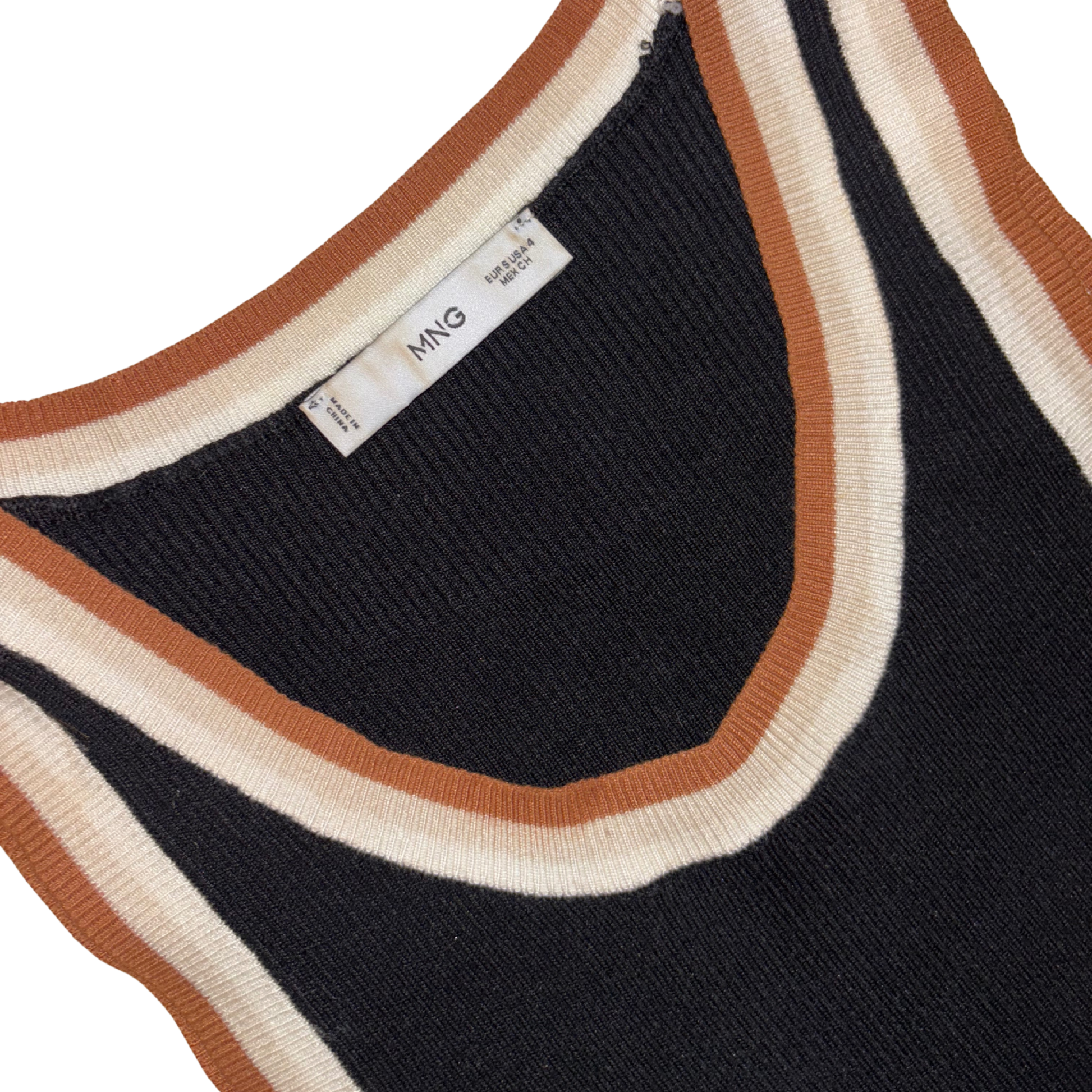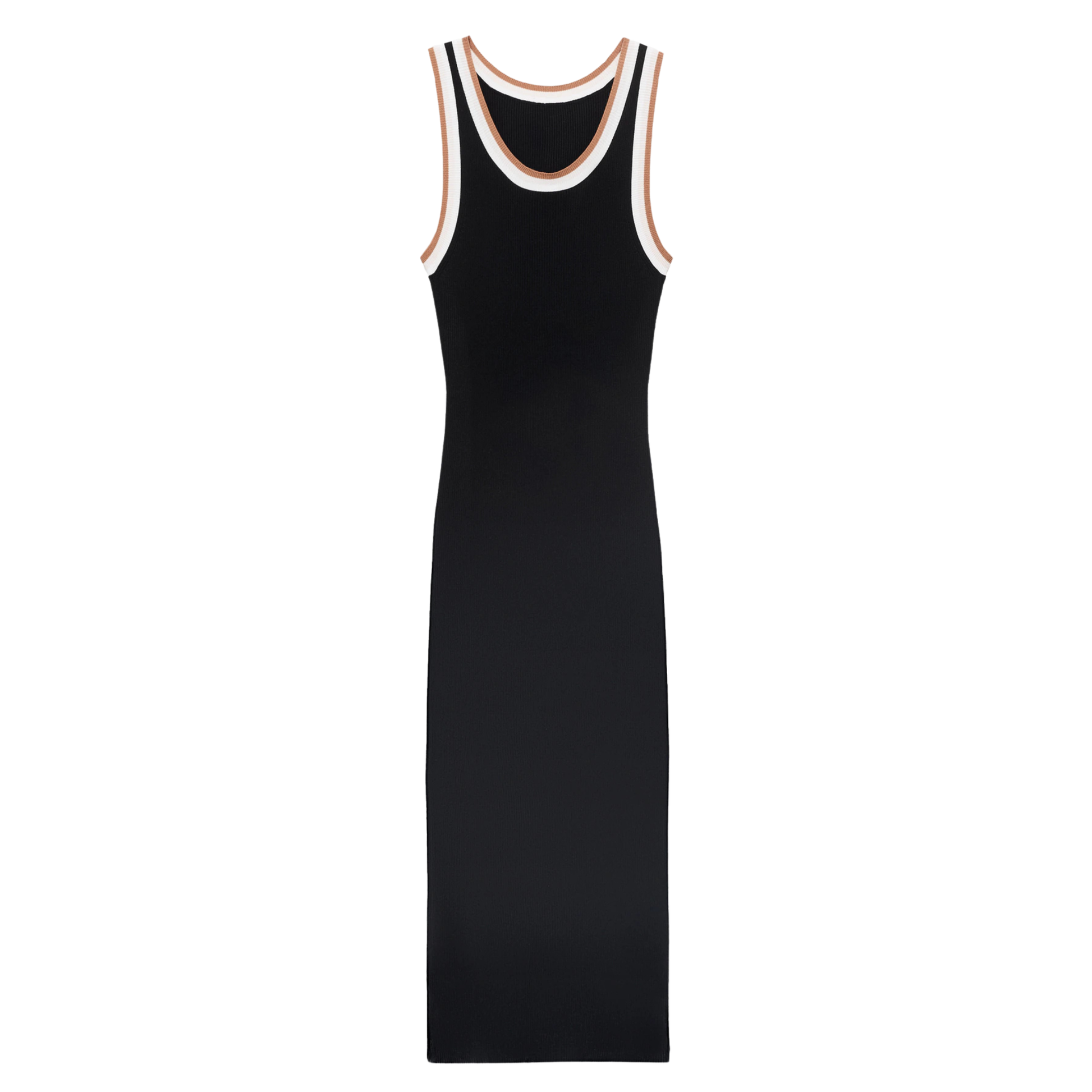 Keep it sleek and stylish in the Mango Black Ribbed Maxi Dress! The soft ribbed fabric hugs your silhouette while the white and orange contrast edges around the neckline and sleeves add a playful, sporty-chic touch. Sleeveless and versatile, this maxi dress is perfect for daytime strolls, brunch dates, or casual evenings out. Pair with sneakers for a relaxed vibe or sandals and accessories to elevate your look in seconds.