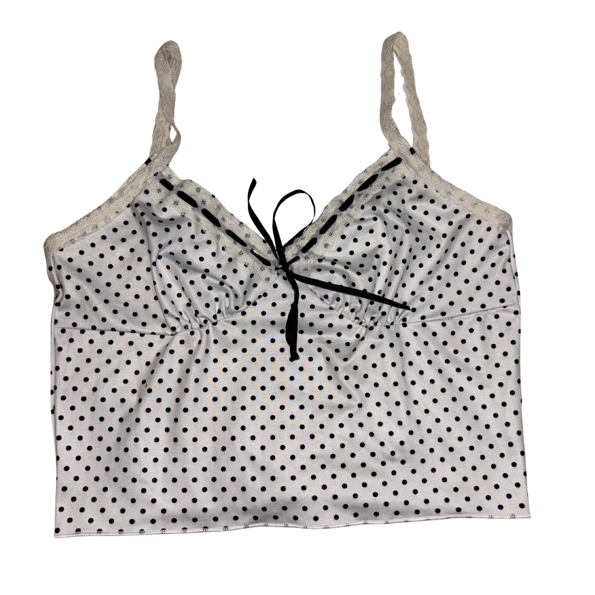 Say hello to the ultimate flirty piece for your wardrobe: the Ego Black & White Polka Dot Crop Top! This top has a soft satin fabric that feels as dreamy as it looks, a playful bow detail at the front, and delicate lace straps. The black and white polka dots are pure retro chic, giving you that vintage-inspired vibe with a modern twist. It’s cropped just right to show off those curves.