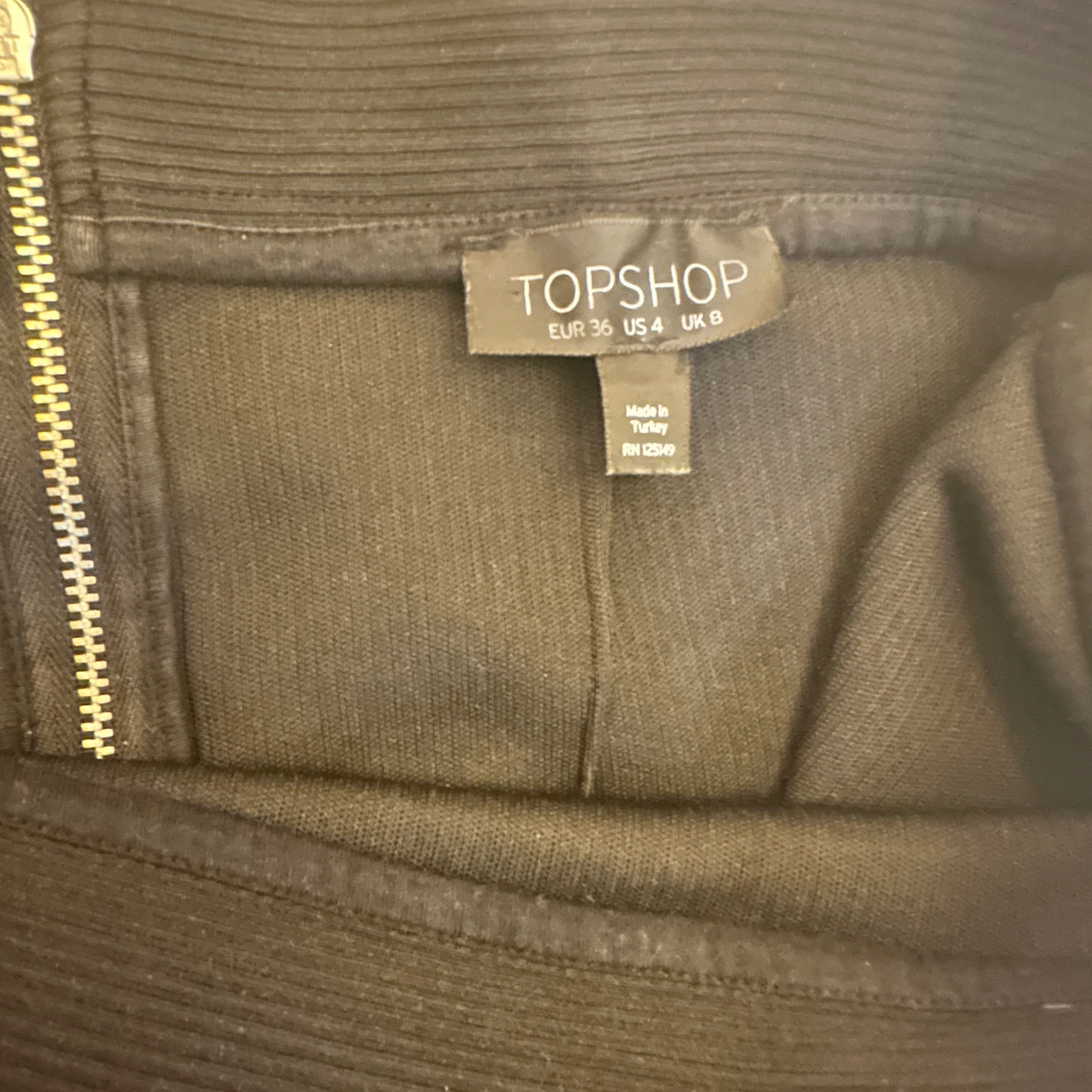 Get ready to turn up the heat with this black ribbed fitted midi skirt from Topshop. Designed to hug your curves in all the right places, this mini skirt adds just the right amount of edge to your wardrobe. The ribbed texture gives it a cozy, luxe feel, while the gold zipper on the back adds a touch of glam and makes it stand out from the crowd.
