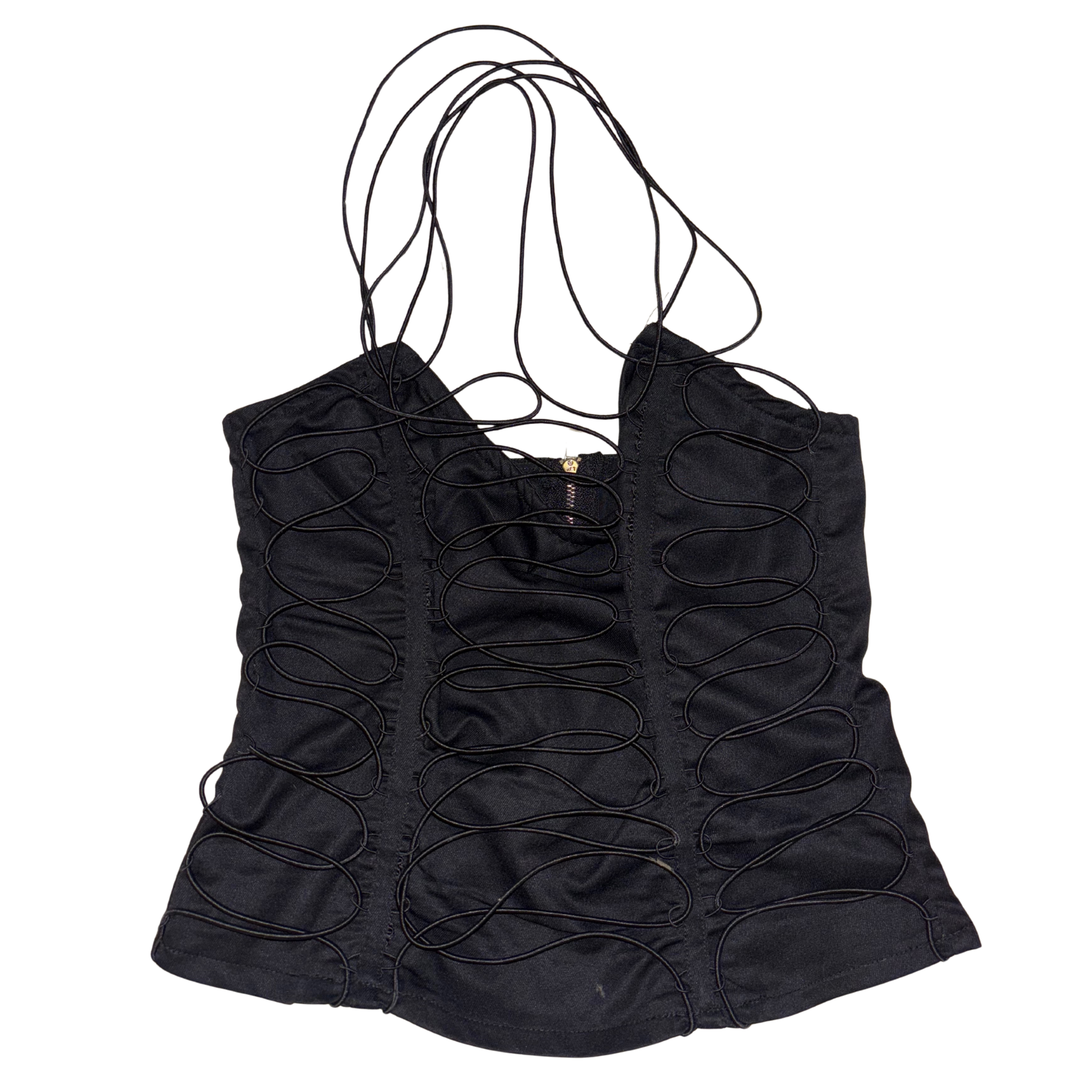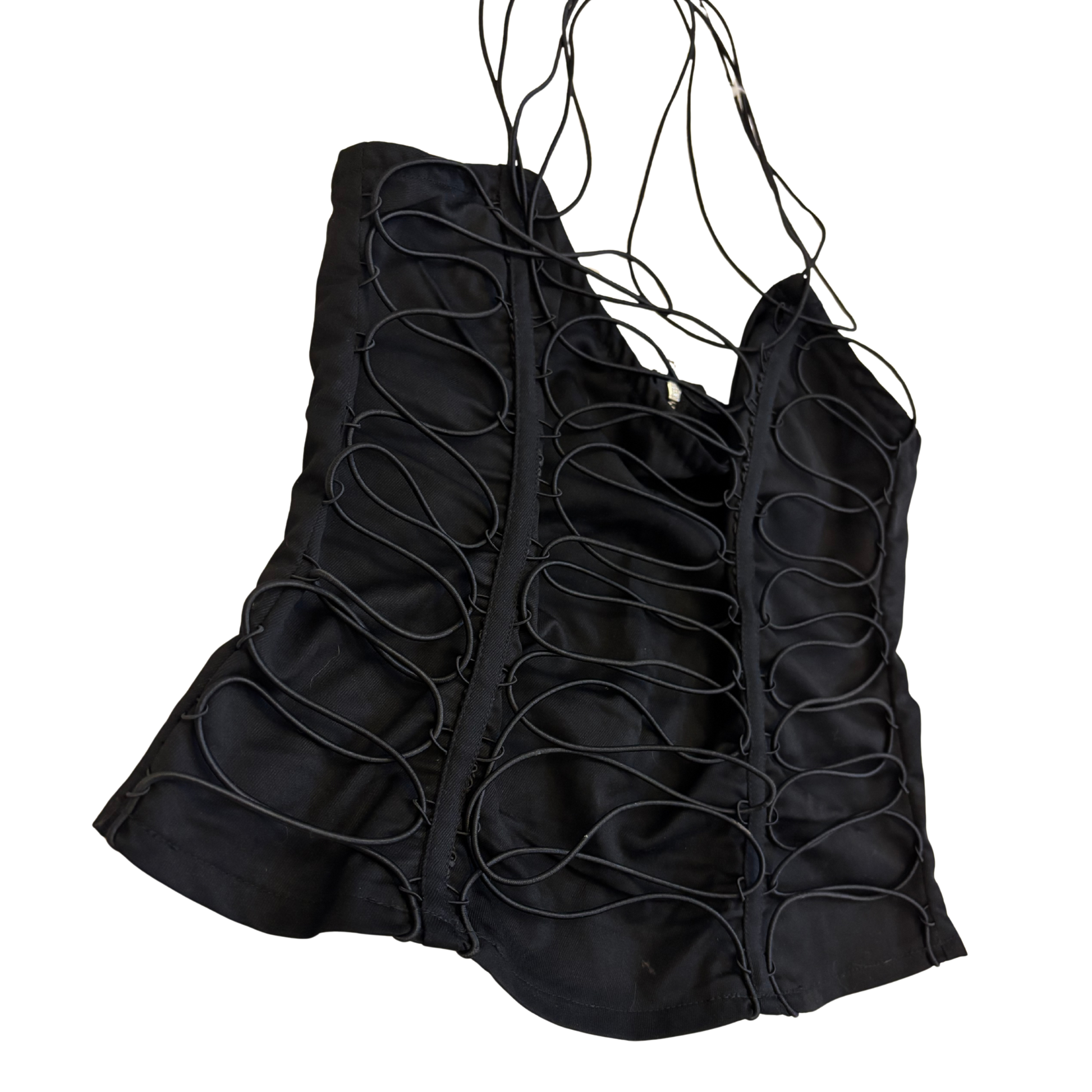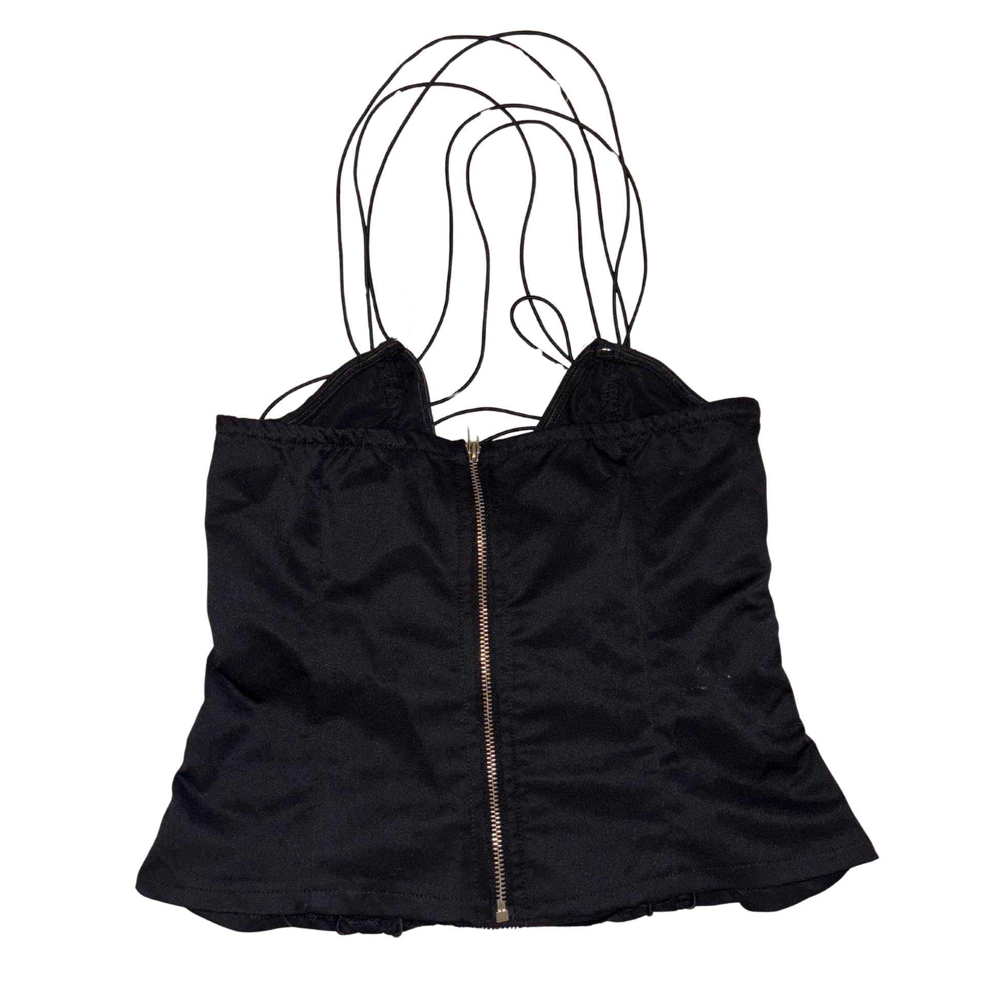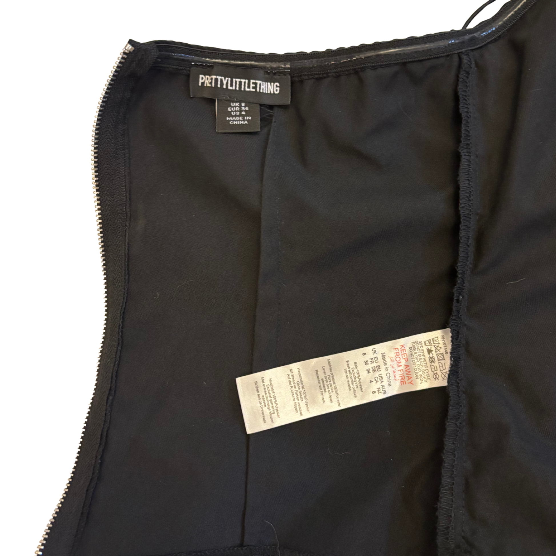 This black woven elasticated corset top from Pretty Little Thing is everything you need to add some edge and elegance to your wardrobe. The elasticated detailing hugs your figure for a sleek, sculpted look, while the corset design gives you that timeless, feminine shape that’s both flattering and oh-so-stylish. With a zip-up back for a secure fit and easy on/off, this top is as functional as it is fashionable.