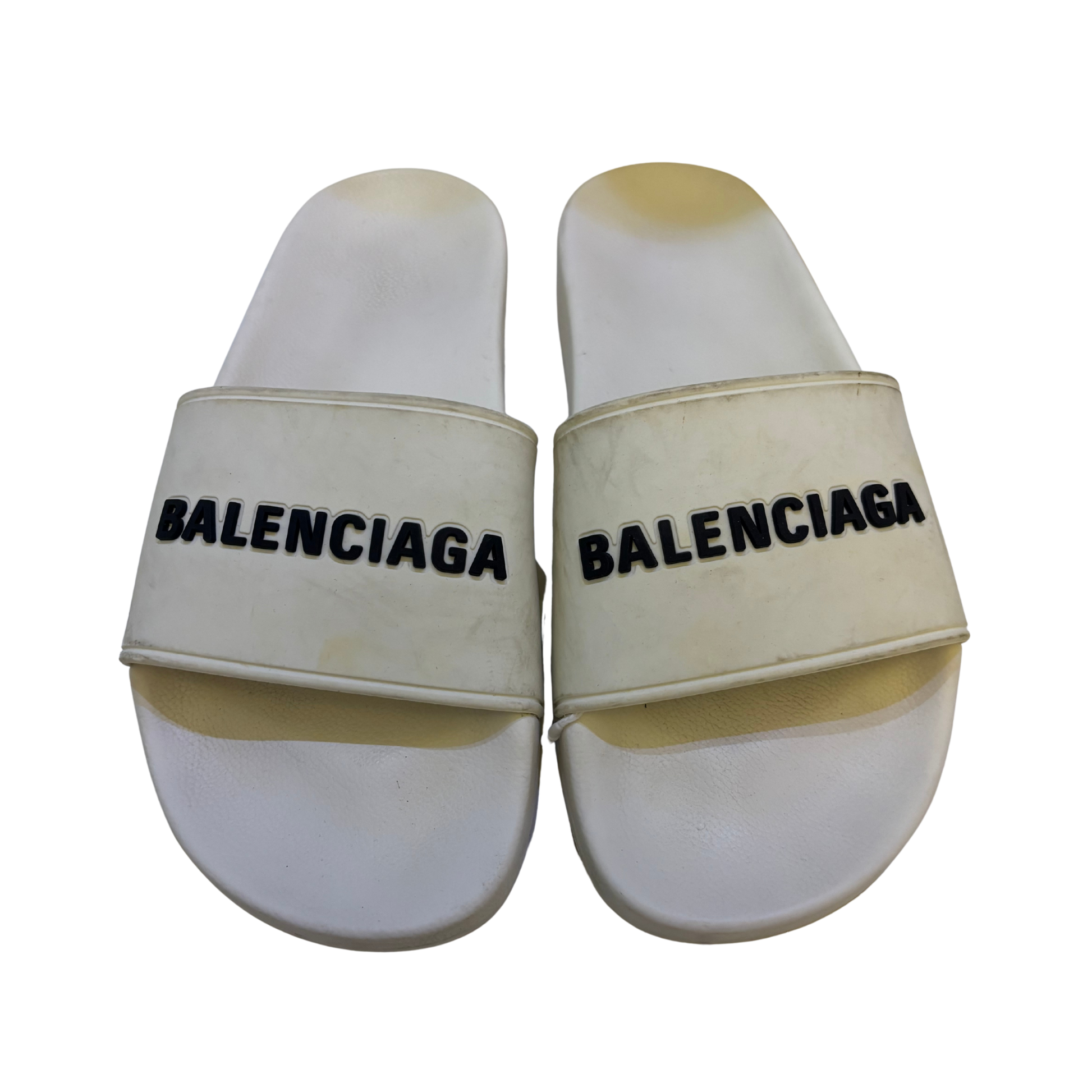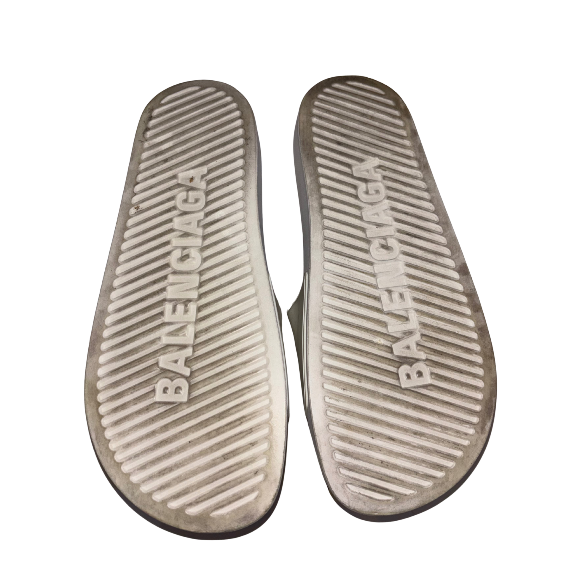 Step into pure cool with these iconic Balenciaga Pool Slides in sleek white. Whether you’re lounging by the pool or styling a laid-back street look, these slides elevate your vibe with their minimalist yet bold design. The signature Balenciaga logo gives them that luxe touch you crave. With a contoured, cushioned footbed, these slides are as comfortable as they are stylish, making them perfect for those days when you want to look effortless but still feel like you’re rocking high-end fashion.