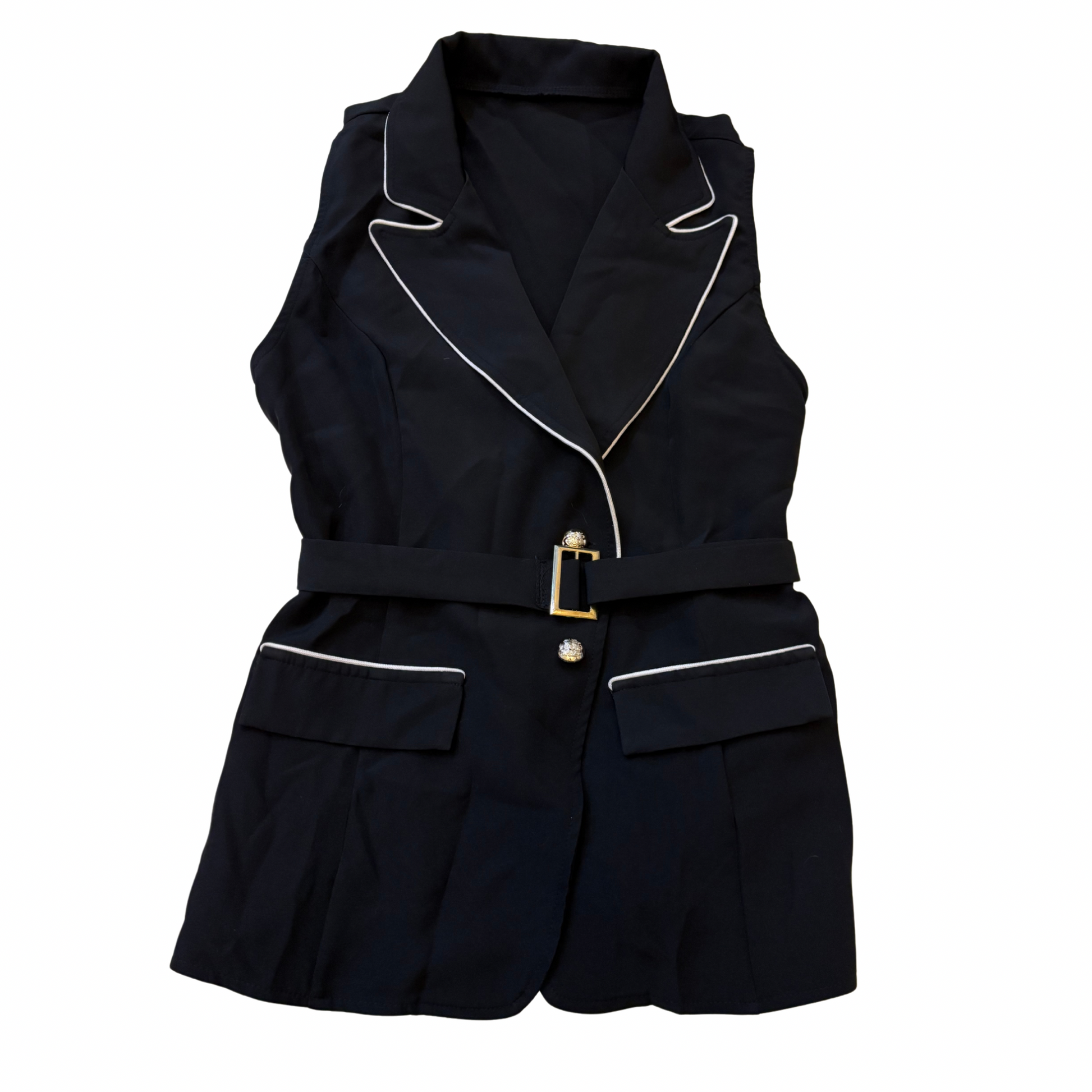 Power dressing just got a modern upgrade. The Black Sleeveless Suit Top with Belt brings boardroom polish with after-hours edge, a timeless tailored silhouette, reimagined for today’s it-girl. The structured cut creates clean lines, while the matching belt cinches the waist for that effortlessly snatched look.