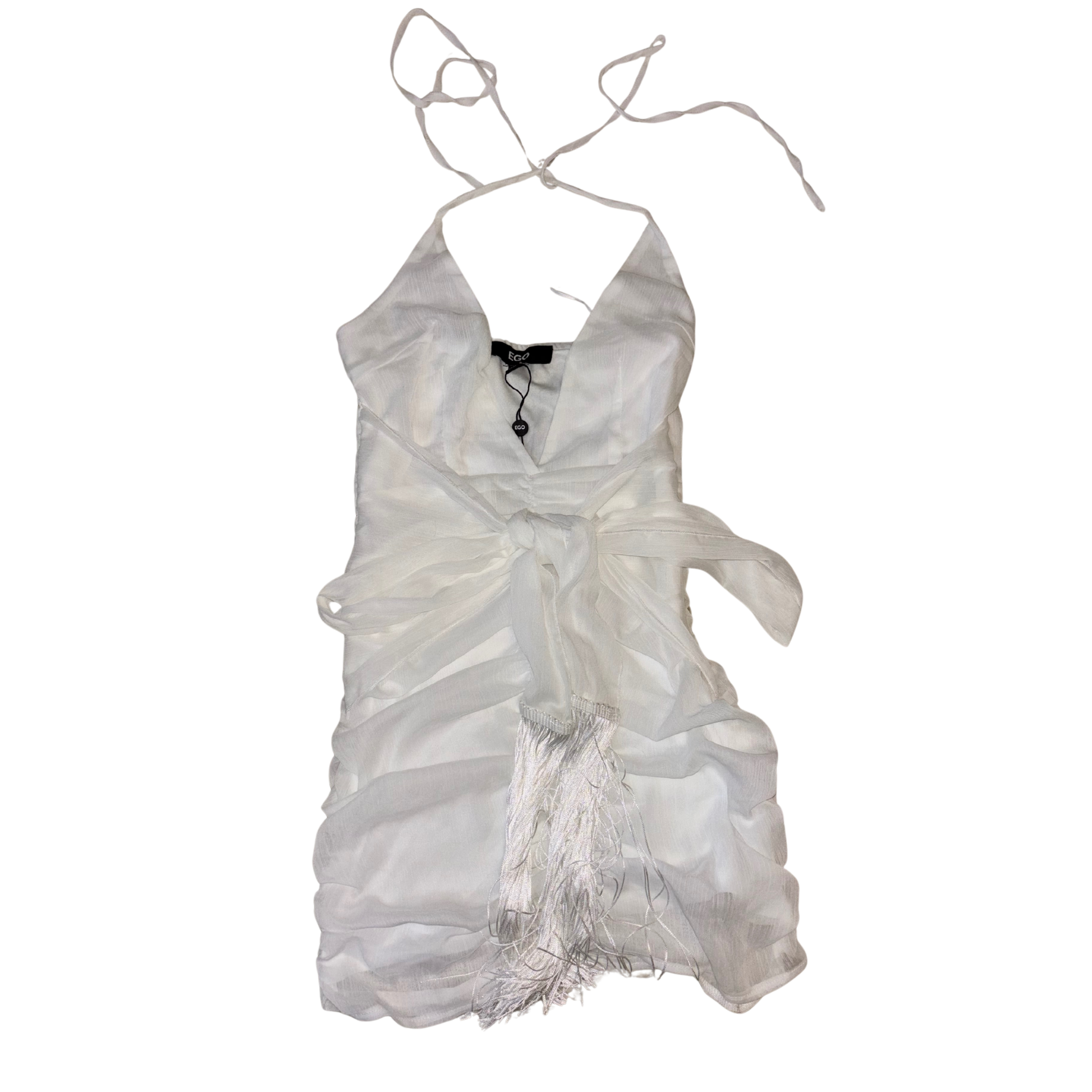 Turn heads in this dreamy EGO white mini dress! The ruched detailing adds flattering shape, while the playful tassel belt brings a whimsical, feminine touch. Effortlessly chic and perfect for brunches, nights out, or any occasion where you want to feel stylish and fun, this dress is all about celebrating your confident, girly side.