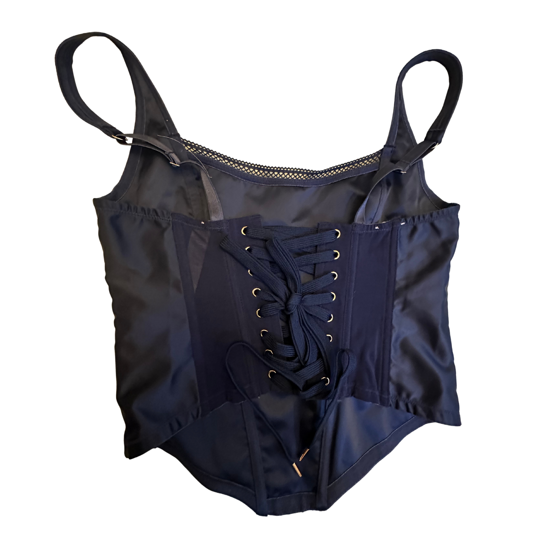 Get ready to feel like a queen in this Savage X Fenty Navy Blue Corset! The rich navy hue with delicate black embroidery is elegant yet edgy and with its lace-up back, you can show off your curves and adjust to your perfect fit. Whether you're rocking it for a special night in or adding a little sizzle to your everyday, this corset is here to help you embrace your inner goddess.