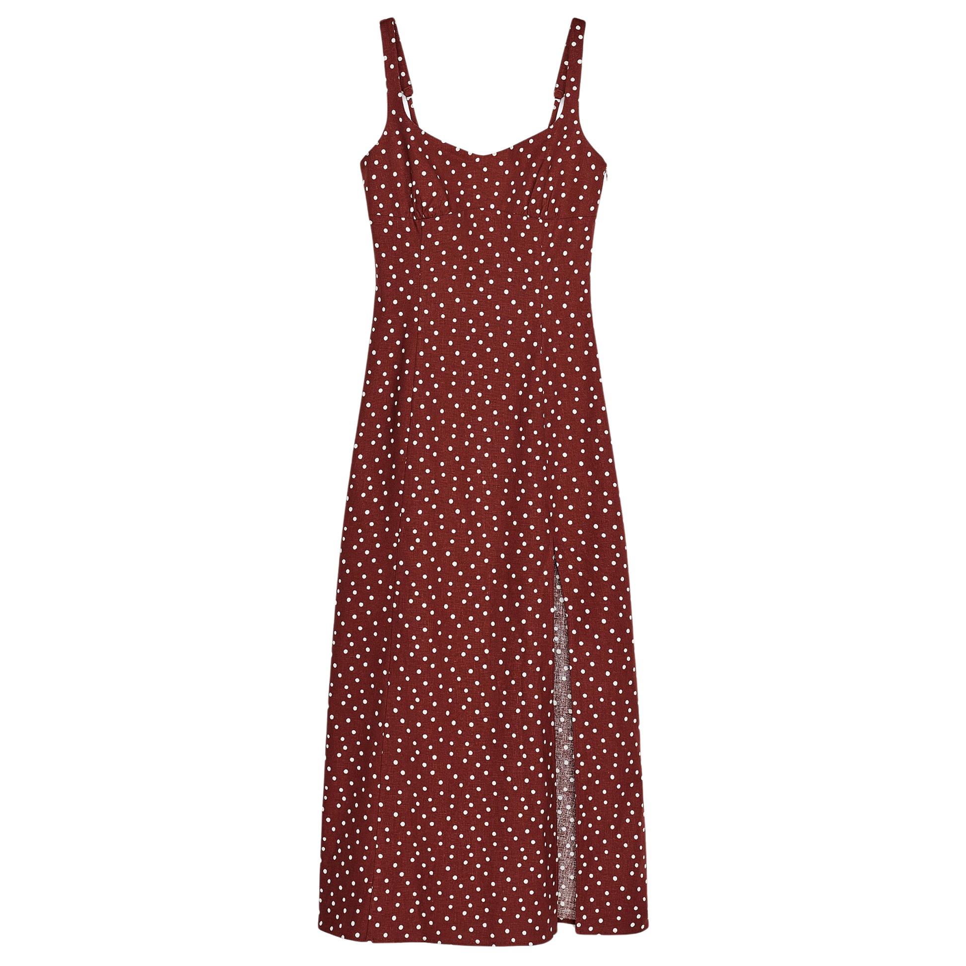 Step into effortless summer vibes with this rust orange dress from Zara, dotted with white spots for the perfect playful touch. The sweetheart neckline adds a feminine twist, while the thick adjustable straps ensure a comfy, flattering fit. The flowy silhouette lets you move with ease, making this dress your go-to for everything from daytime adventures to evening strolls.